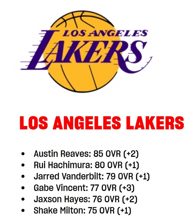 2K能力值变化之湖人:里夫斯+2到85 海斯+2至76 文森特+3到77