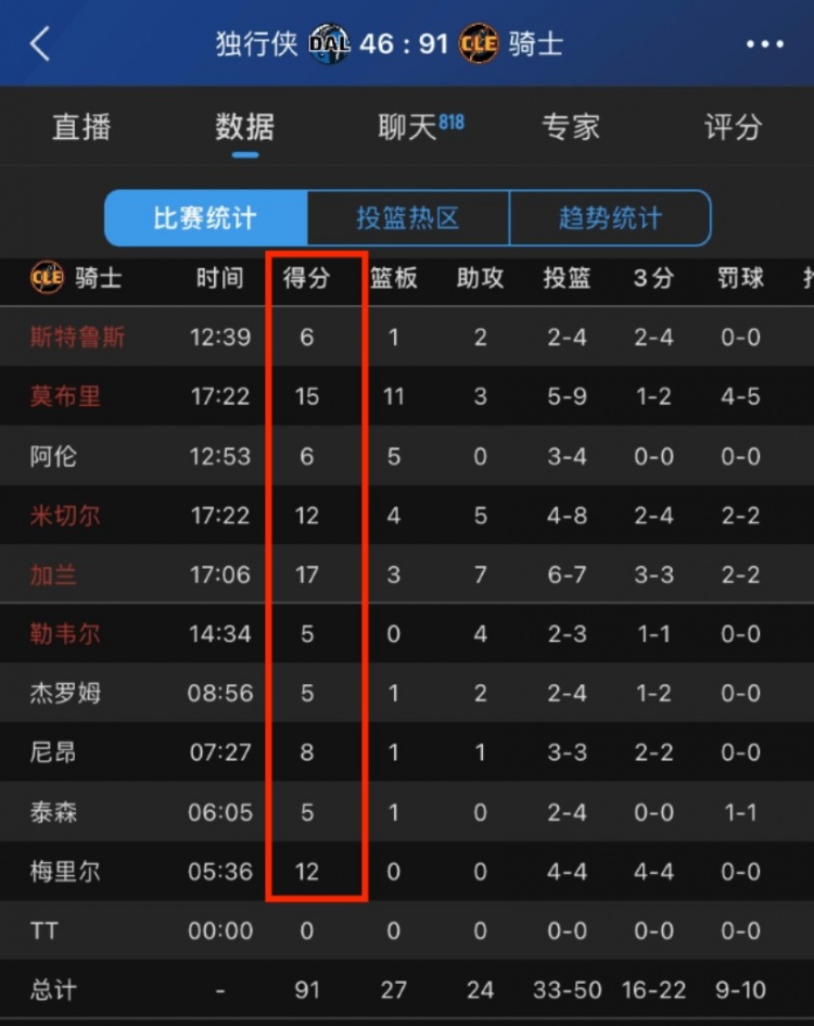降维打击!骑士半场轰下91分&领先残阵独行侠45分!4人上双!