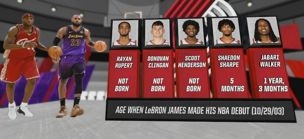 转播方晒图:詹姆斯生涯首秀 开拓者三名球员还没出生
