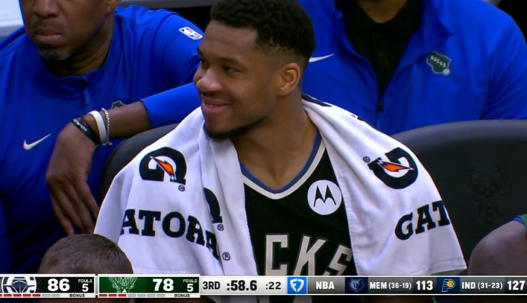 2+1&暴扣&急停虚晃!小波特连砍7分 场下的字母哥露出笑容