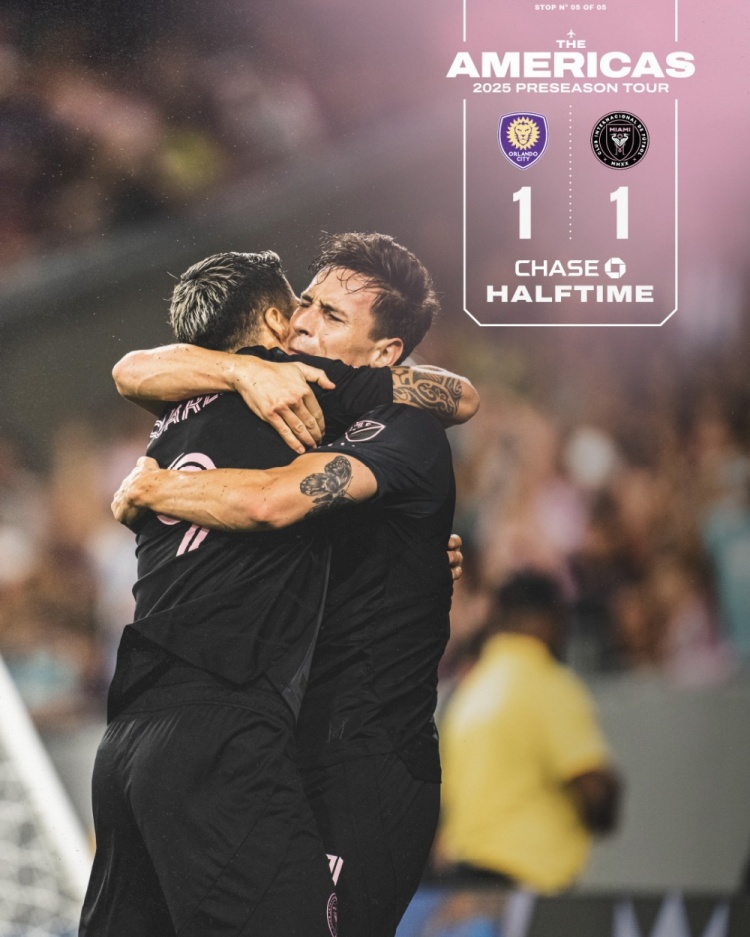 半场-迈阿密国际1-1奥兰多城 苏亚雷斯助攻+越位破门阿连德进球