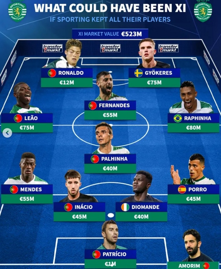 德转列葡体履历当前最强阵:C罗、莱奥领衔,B费、拉菲尼亚在列