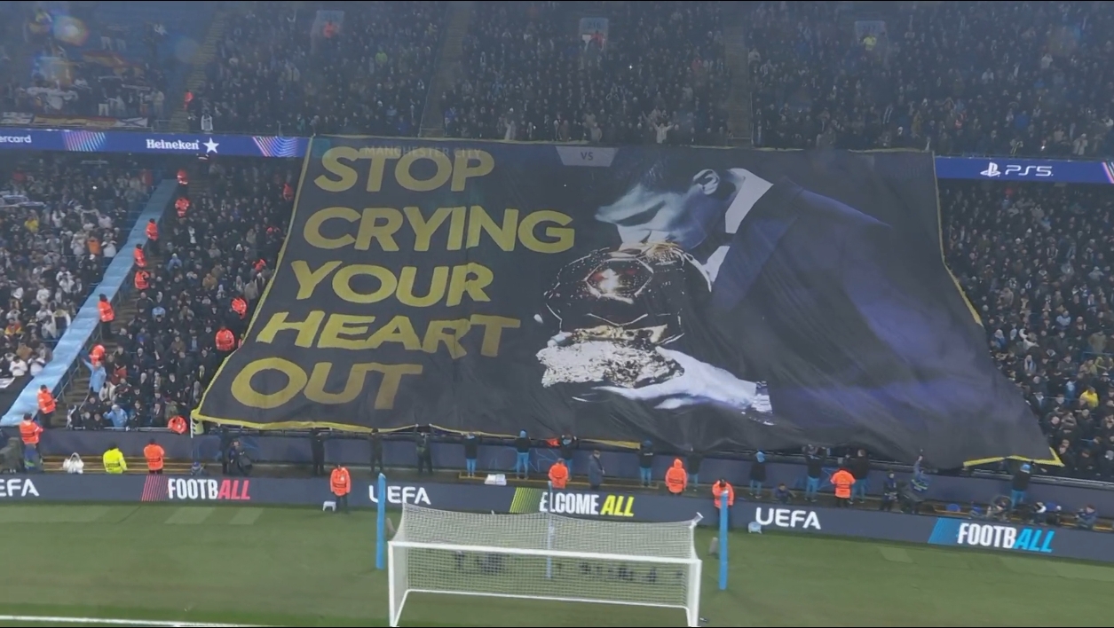 曼城球迷打出罗德里亲吻金球奖TIFO:收起你的眼泪!