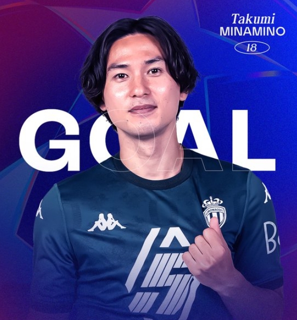 本场比赛第32分钟,摩纳哥球员南野拓实小角度破门,攻入个人欧冠第5球。