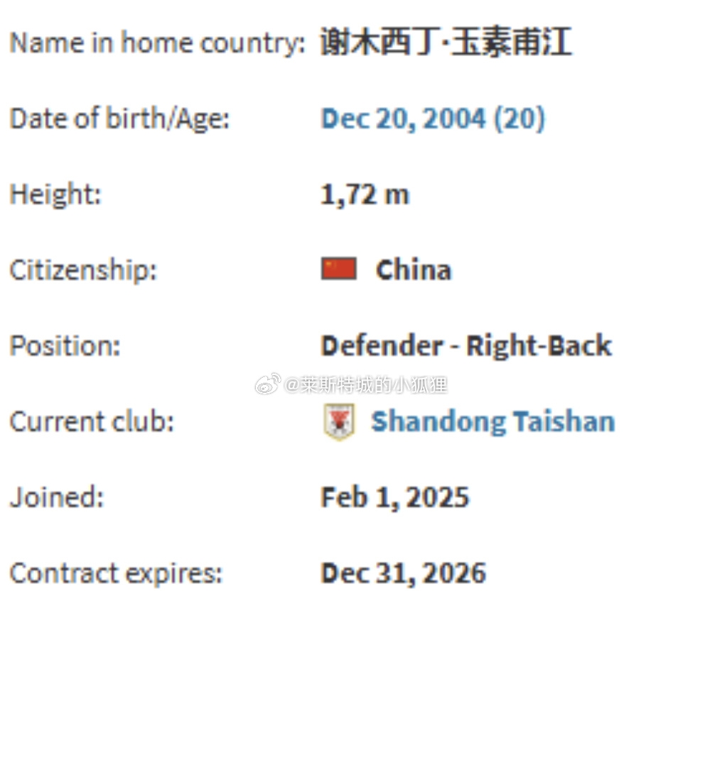德转显示,因年龄造假被禁赛三个月的谢木西丁就是泰山的玉苏甫