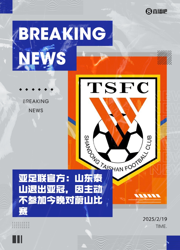 重磅!亚足联官方:山东泰山退出亚冠,主动不参加今晚对蔚山比赛