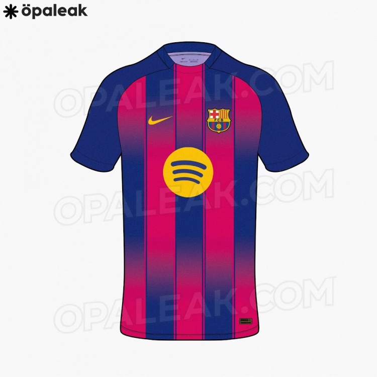 巴萨新赛季主场球衣谍照:渐变效果红蓝色,搭配黄色Logo
