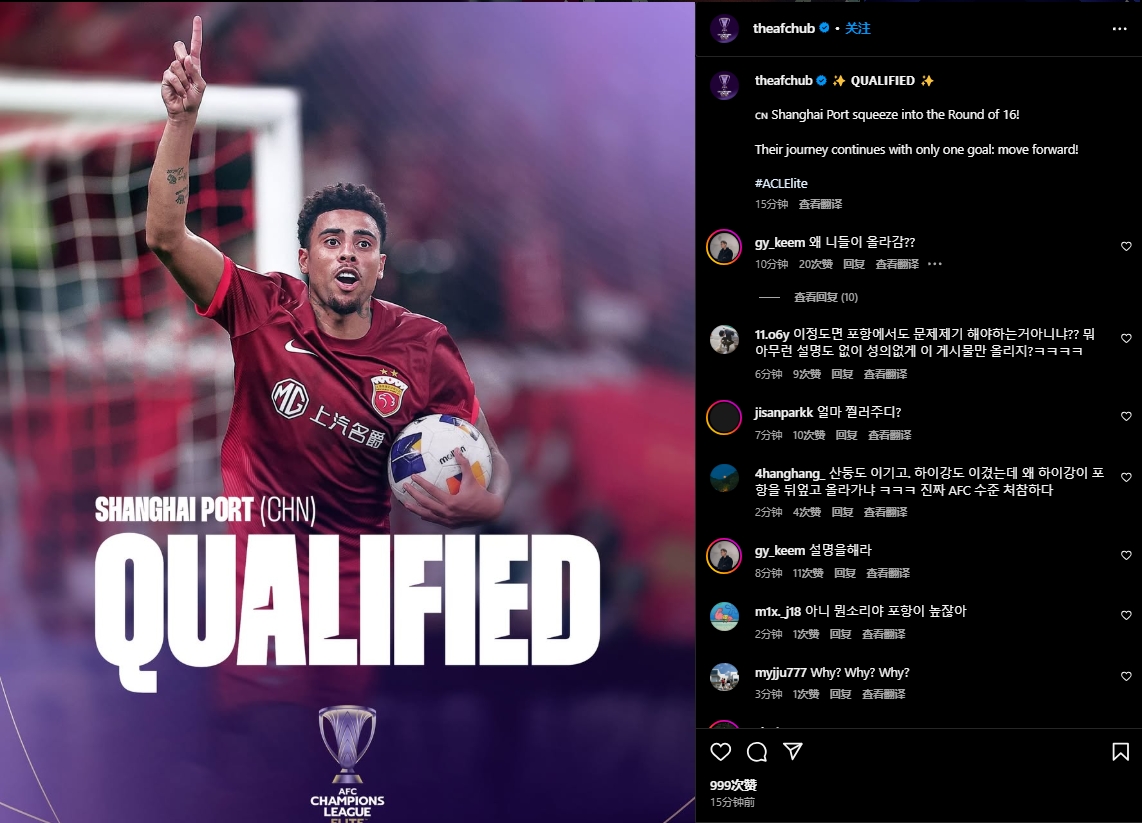 亚足联官方社媒发海报祝贺海港晋级,遭韩国球迷围攻:荒谬的结果