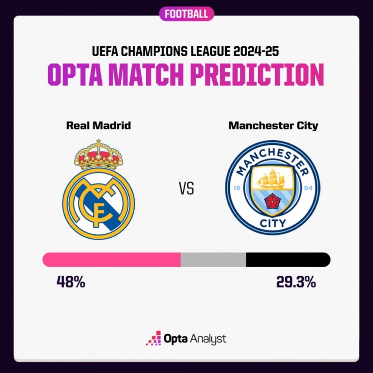 超算预测皇马vs曼城赛果:皇马晋级概率高达78.4%,赢球概率48%