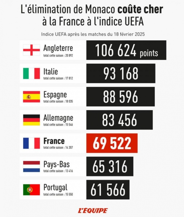 队报:法国在欧足联系数第5的位置岌岌可危,荷兰、葡萄牙紧追