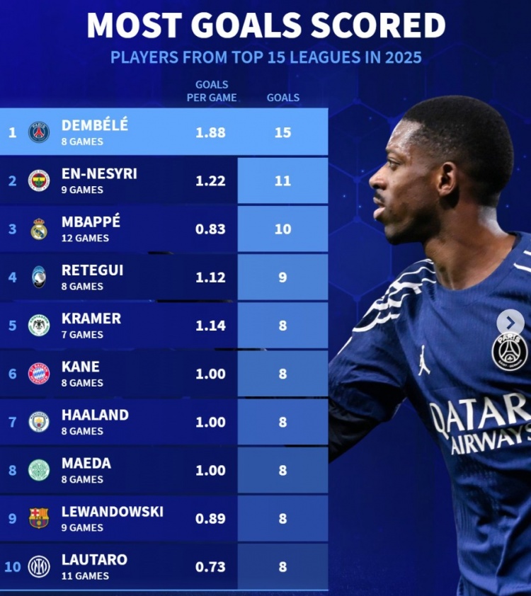 2025年02月12日 欧冠-巴黎3-0布雷斯特占先机 登贝莱双响+造点&8场轰15球