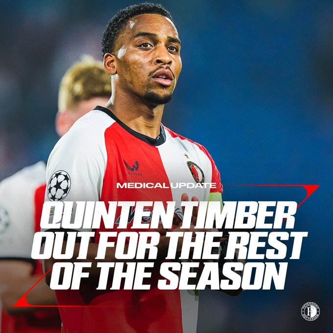 赛季报销!费耶诺德官方:昆滕-廷伯膝外侧韧带受伤,已接受手术